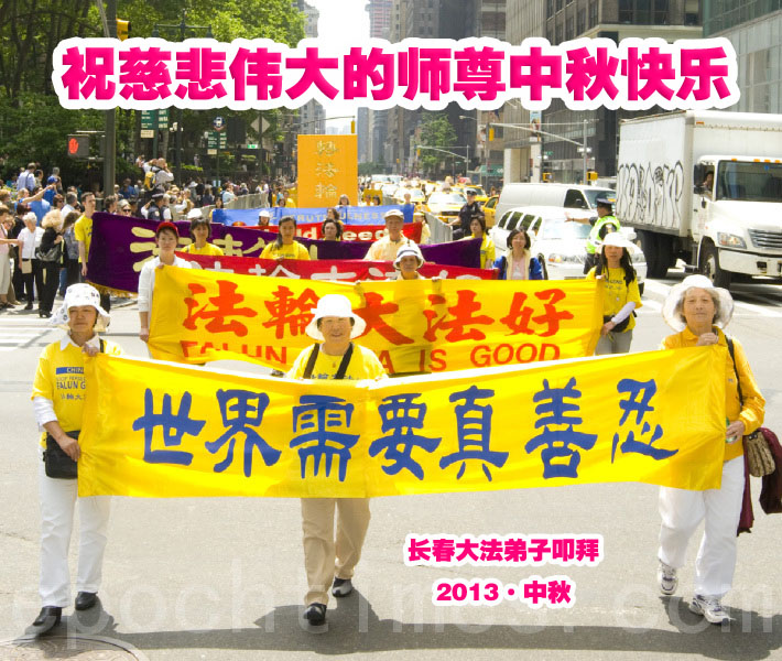 团圆之日不团圆,几家欢乐几家愁;笑看邪恶猖狂状,正念正行不低头! 在这个特殊的日子里,弟子一定尽力弥补过去的损失,认真学法,走出自我,跟上正法進程,救度众生,做师尊合格的弟子! 二零一三年九月十七日 旅居山东省的黑龙江大法弟子恭祝慈悲伟大的师尊中秋节快乐!