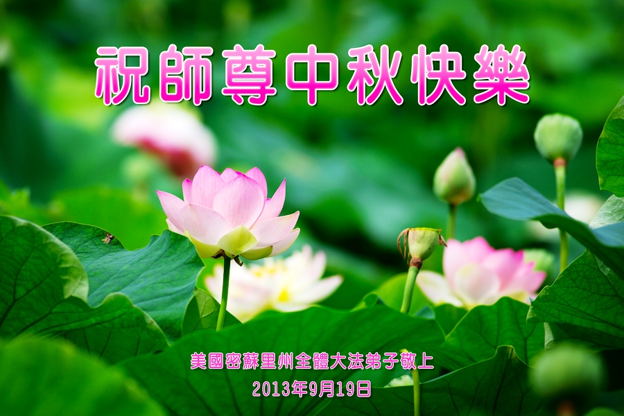 【明慧网二零一三年九月十九日】 纽约全体大法弟子恭祝慈悲伟大的师尊中秋快乐