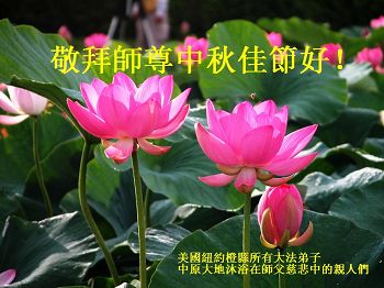 纽约大法弟子向慈悲伟大的师父问好!祝师父中秋节快乐!并代表河南郑州大法弟子向师父问好!