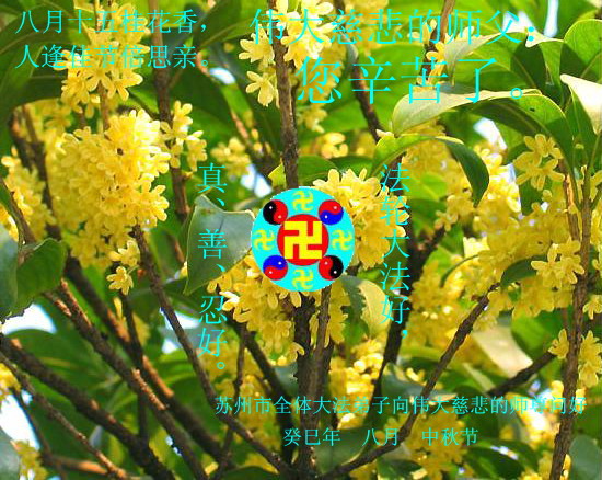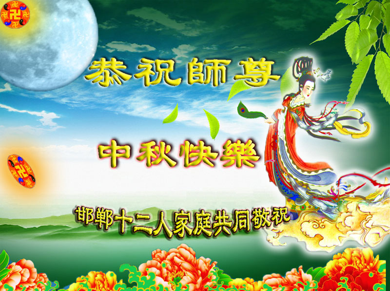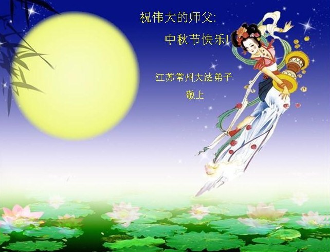 恭祝伟大的师尊中秋节快乐!谢慈悲师尊的苦度! 苏州大法粒子敬上 江苏省南京一家三个大法弟子想念师父!祝师父中秋佳节快乐!