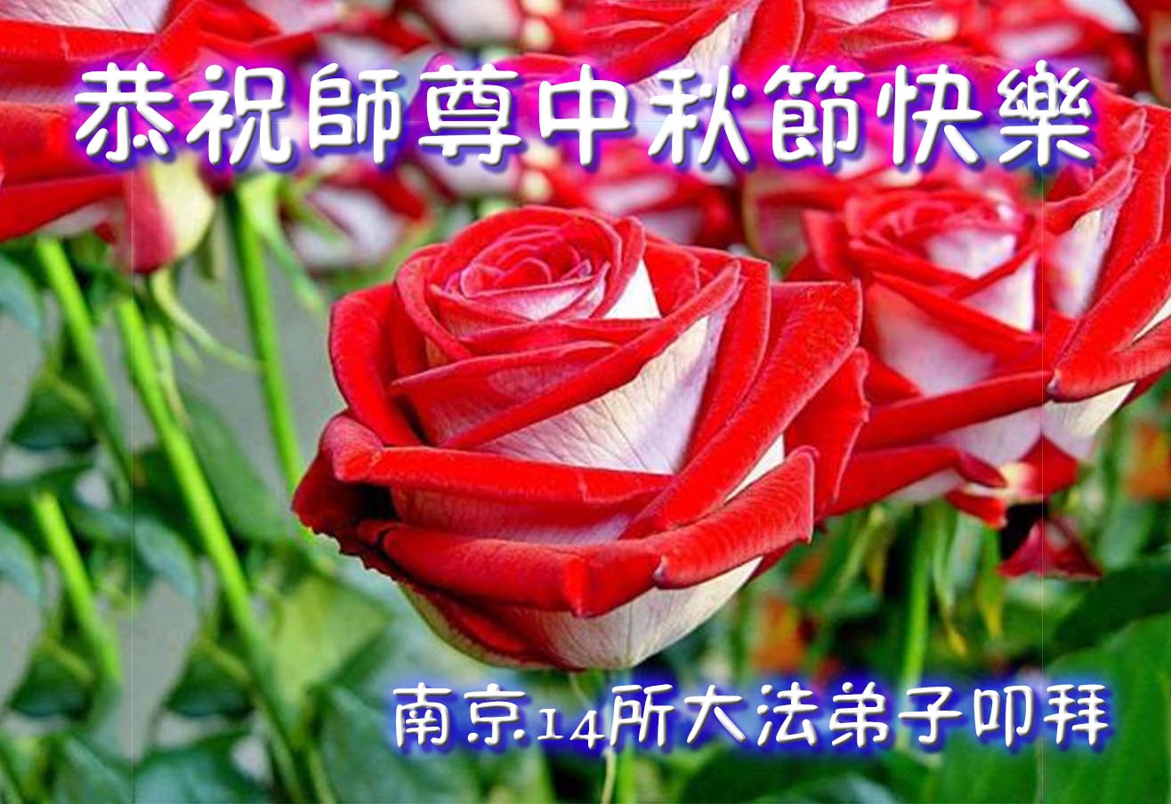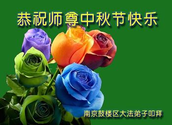 在伟大师尊的慈悲呵护下,我们地区在十几年的助师正法过程中逐渐走向成熟,过程中虽然有过太多的苦涩,但回过头来看这些又变成了成熟的甘露。 今天我们要向全世界的人发出心底的声音:“我们大法徒是世界上最幸福的人,因为我们有世界上最慈悲的师父!”请师尊放心弟子们一定会在最后的时间里整体提高,整体升华,竭尽全力不落下一个同修,整体跟师父回家! 2013年9月13日 江苏省南京市鼓楼区大法弟子恭祝师尊中秋节快乐!