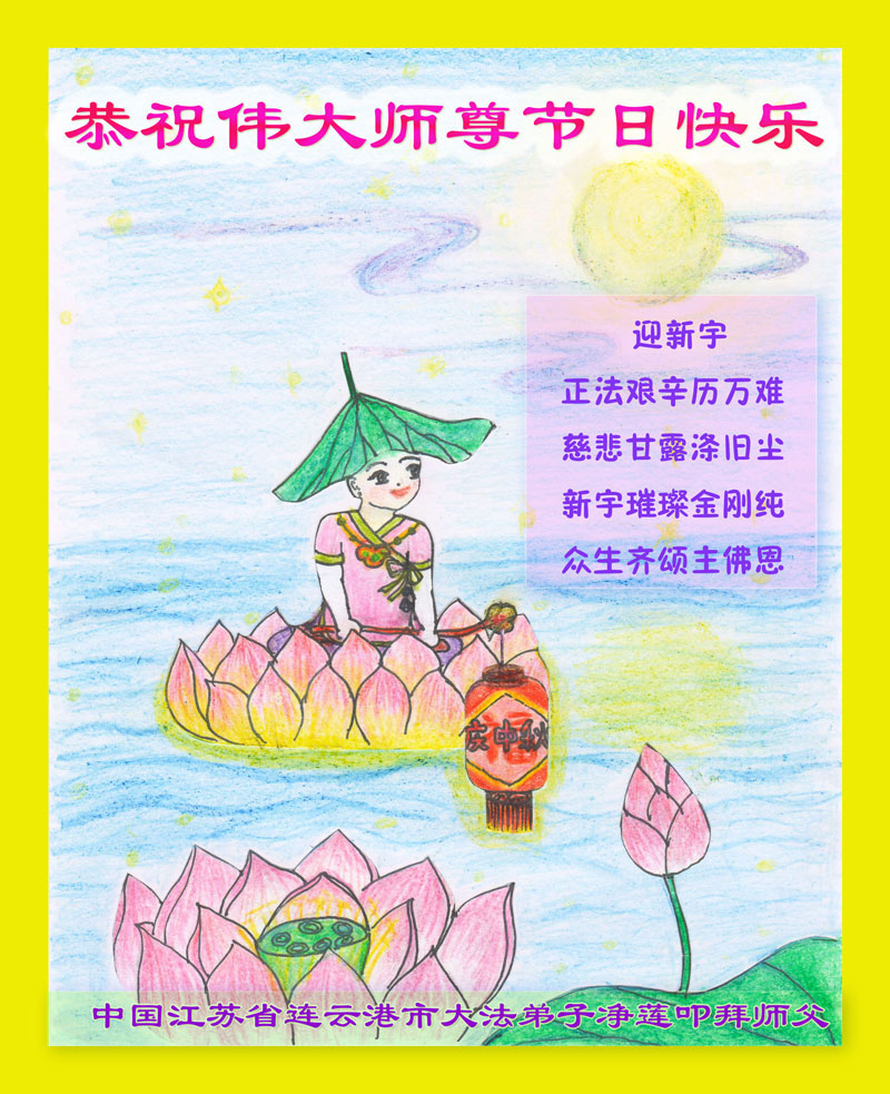 明月寄秋思 秋风清,秋月明。 西行万里遥,为我传心声。 我有恩师在异乡,佳节临近思倍增。 天欲倾,师尊擎。 只身挡巨难,救众世间行。 天上人间苦操劳,二十春秋未闲停。 读真经,修心性。 法徒遵师命,全力救众生。 真相广传破迷谎,正念慈悲化顽冥。 除邪灵,世人醒。 三:退.红朝灭,雾散满天晴。 明朝师尊回中原,洪恩齐颂把师迎! 镇江大法弟子恭祝师尊中秋快乐! 江苏省常州大法弟子恭祝师尊中秋节快乐!
