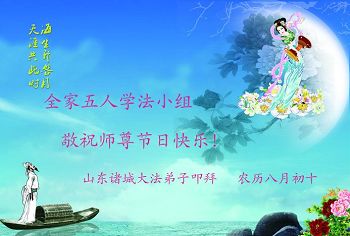 山东省潍坊市昌邑市大法弟子代表全家恭祝师尊中秋快乐!师尊您辛苦了!