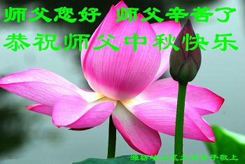 请师尊放心弟子一定努力做好三件事,走好师尊安排的路,紧跟正法 進程,圆容师尊所要。 盘锦大法弟子 二零一三年九月十四日 辽宁盘锦辽河口全体大法弟子祝师父中秋节快乐!