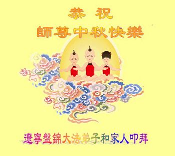 师父辛苦了!中秋佳节,想念师尊,寄语明月,捎去弟子的一片心:祝师尊中秋节快乐! 弟子三件事做的不够,尤其今年天气烧烤,炼功又跟不上了,更不用说救人了。从今天开始,要下苦功夫,去安逸心,多学法、多救人,跟上正法進程,兑现史前誓约!跪拜师尊!合十!山东潍坊高密大法弟子 山东省潍坊市高密市大法弟子祝慈悲伟大的师尊中秋节快乐!山东高密大法弟子三人 山东省潍坊市潍城大法弟子一家人恭祝伟大师尊中秋快乐!