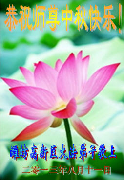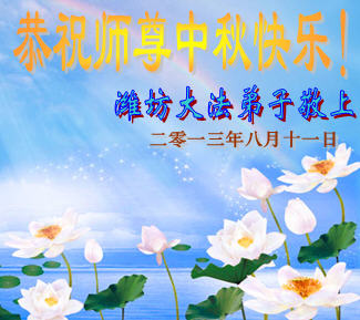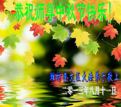 恭祝伟大师尊中秋节快乐!师尊辛苦了!弟子叩谢师尊! 潍坊大法弟子 2013.9.14 山东省潍坊昌乐大法弟子祝师父中秋节快乐!