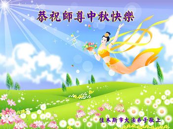 中秋发贺卡, 贺卡千万个。 个个弟子心, 祝师永快乐。 宇宙在欢唱, 师恩浩荡歌。 法轮大法好, 歌声震天河。 助师正法路, 越走越宽阔。 精進到最后, 随师回天国。 黑龙江省佳木斯大法弟子姐妹俩叩拜师尊,恭祝师尊中秋快乐!