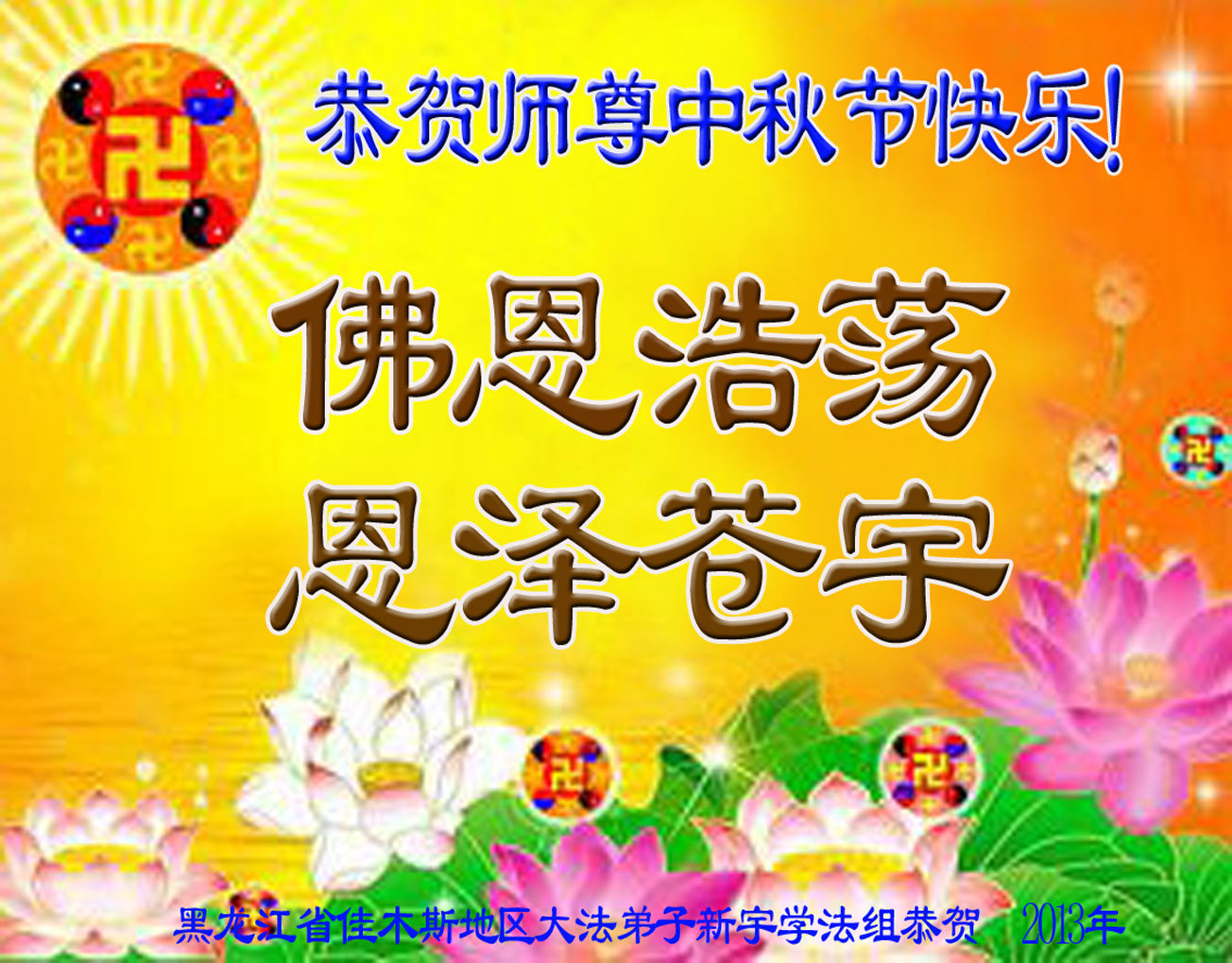 师尊辛苦了! 黑龙江佳木斯东北边陲全家大法弟子跪拜恩师 二零一三年九月十五日 北京丰台大法弟子恭祝师尊中秋快乐!