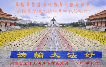 二零一三年九月十四日 内蒙古兴安盟全体大法弟子跪拜师尊,恭祝师尊中秋快乐!