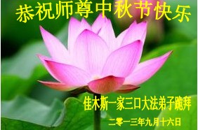 【明慧网二零一三年九月十九日】 黑龙江省佳木斯一家三口大法弟子恭祝师尊中秋节快乐!