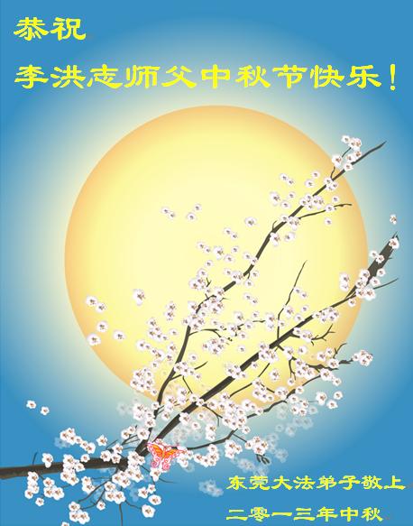 弟子们谨遵师父教诲,做好三件事,不辜负师尊的期望,精進实修自己,救度更多有缘人。 广东省东莞大法弟子恭祝李洪志师父中秋节快乐!