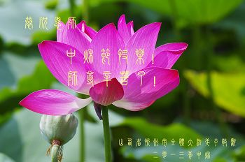 尊敬的师父您好,您辛苦了! 在正法突飞猛進的最后时刻,我们一定要学好法,向内找,修好自己,做好三件事,让师尊少一份操劳,多一份欣慰。 山西省晋城市四个学法小组的全体大法弟子叩拜师尊 二零一三年九月十六日 山西省阳泉大法弟子恭祝师尊中秋快乐!