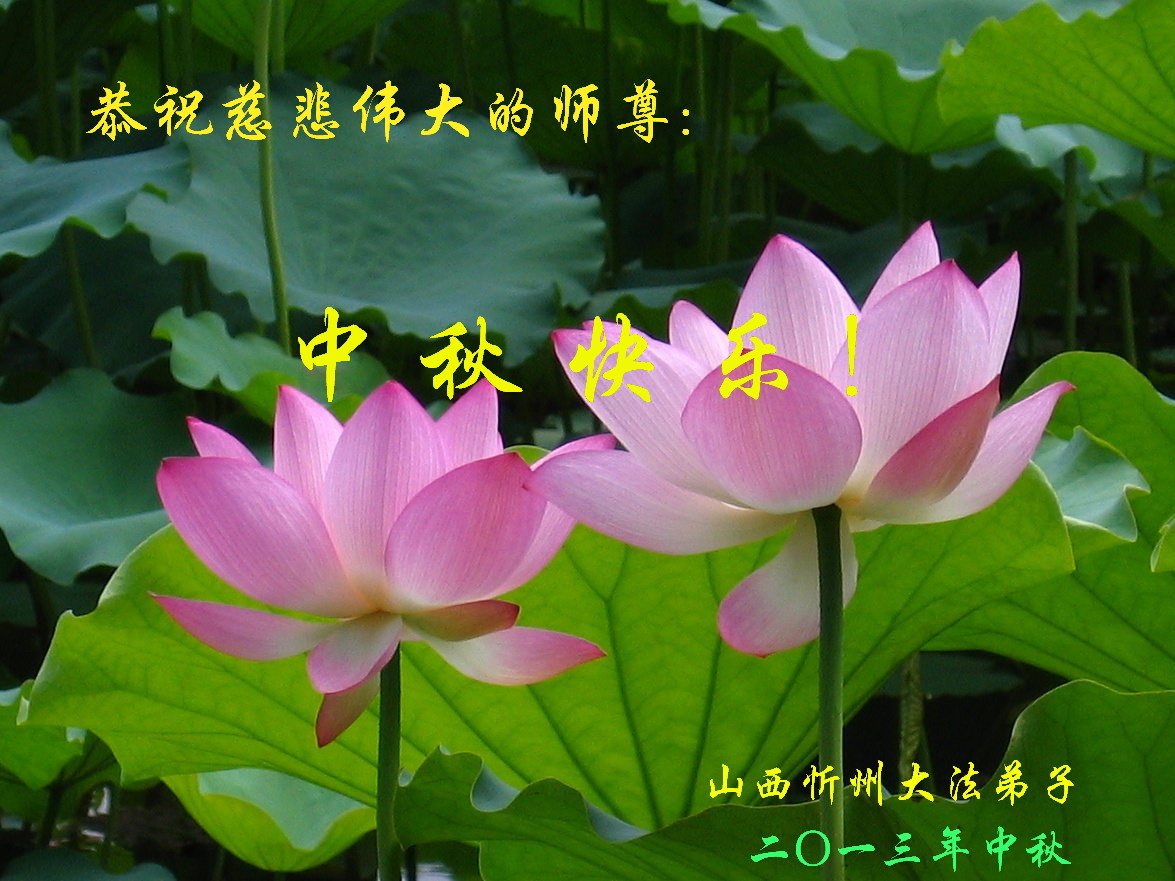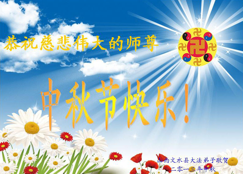 【明慧网二零一三年九月十九日】 山西省吕梁地区文水县大法弟子恭祝慈悲伟大的师尊中秋节快乐!