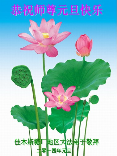 向师尊问好、叩谢!二零一四年元旦到了,弟子遥拜师尊,叩首再叩首,谢谢伟大的师尊!在新的一年里,弟子一定听师尊的话,精進实修,兑现誓约。再次叩谢师尊!合十 河北省石家庄教育系统大法弟子恭祝师父新年快乐!