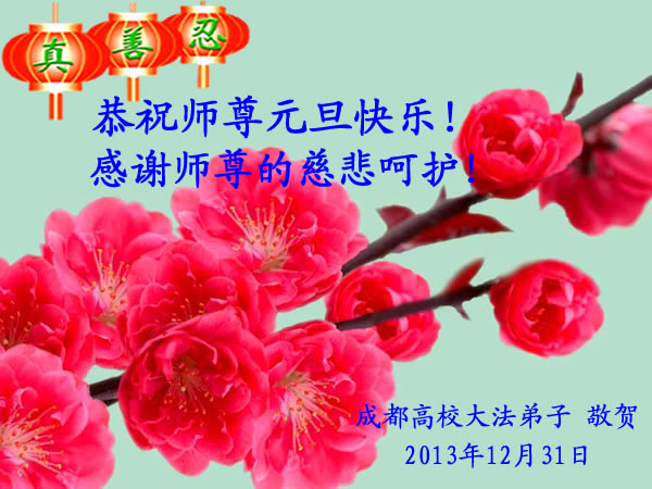 四川省成都高校大法弟子恭祝师尊元旦快乐!