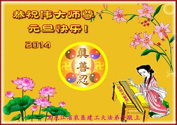 我将牢记师父的教诲,心系有缘众生,在工作中帮助学生学会独立思考,脱离中共邪*党-的思想控制,方方面面真正起到大法弟子的作用。 黑龙江教育系统全体大法弟子恭祝慈悲伟大的师尊新年快乐!
