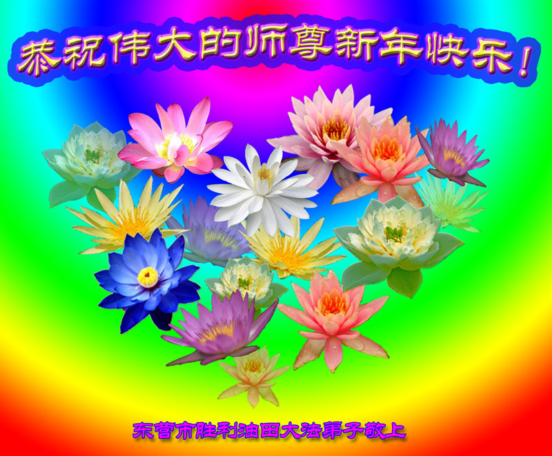在最后的时刻,作为一名大法弟子,我还有很多事没有做好。无论如何,我坚修大法的心金刚不动,在有限的时间里我将努力找出自己的不足,修去它,克制自己,多多救人,真正让师尊少一份操劳,多一点欣慰。在这喜庆的日子里,我在远方遥祝师尊元旦快乐! 中国大陆辽宁盘锦兴隆台钻井二公司大法弟子向尊敬的师尊问候新年好!