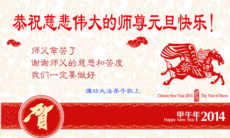 山东淄博大法弟子向伟大的师尊恭祝新年节日快乐!