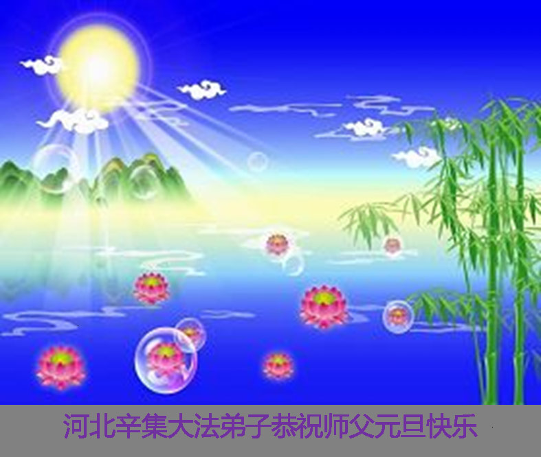 师尊弟子们想念您!我们会更加精進实修,救度更多的众生,唯愿师尊笑。 河北省石家庄市辛集市大法弟子恭祝师父元旦快乐!