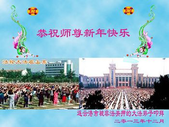 【明慧网二零一四年一月二日】 江苏省连云港市被非法关押的大法弟子恭祝师尊新年快乐!