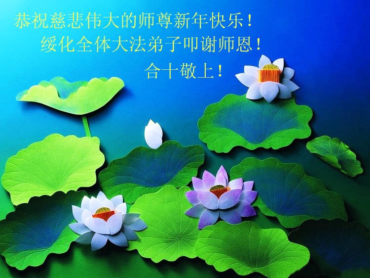 感谢师父慈悲救度,师父放心,弟子一定做好三件事,勇猛精進,圆满随师还! 山东省聊城市东阿县全体大法弟子敬祝师父新年快乐!