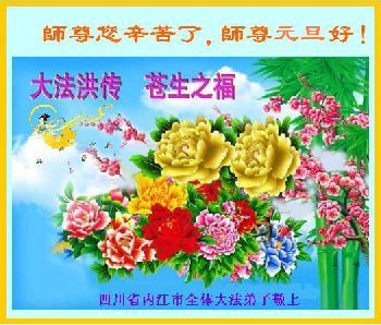 四川省内江市全体大法弟子恭祝慈悲伟大的师尊元旦好