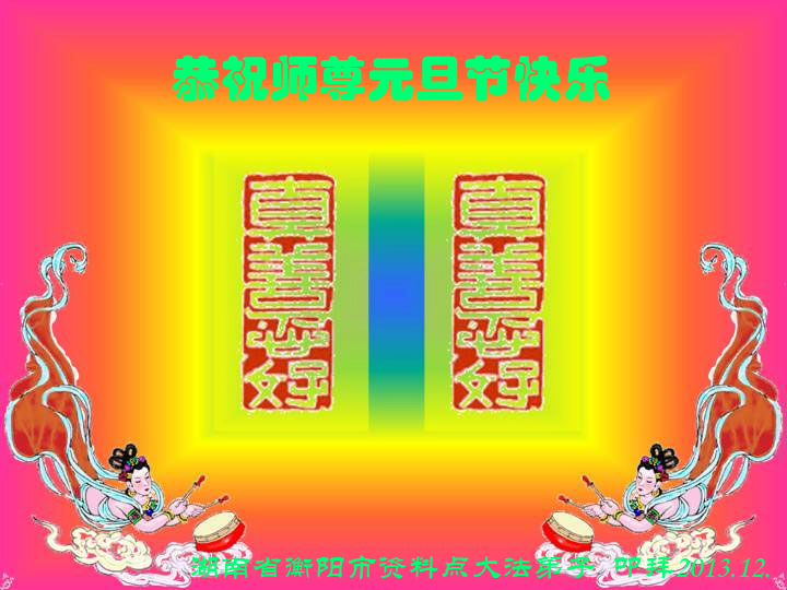 师尊,您辛苦了,谢谢师父慈悲苦度! 转眼一年过去了,在新的一年里,弟子一定牢记师尊教诲修好自己,做好“三件事”,让师尊少一份操劳。 河北省廊坊市三河大法弟子跪拜师尊!合十 2013年12月31日 吉林省长春大法弟子祝师尊新年快乐
