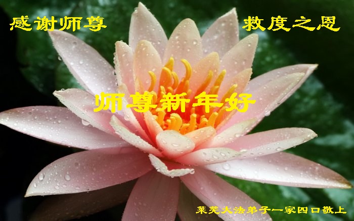 山东莱芜市大法弟子一家四口敬祝师尊新年好