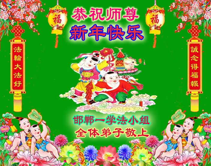 时间飞逝,转眼又要進入新的一年。在中国传统新年即将到来之际,我们河北省衡水一学法小组的九名大法弟子向伟大的师父拜年! 师父!您辛苦了! 师父的慈悲,师父的恩泽,我们无以言表,唯有精進实修,做好师父交代的三件事,遇事向内找,整体提高,不辜负师父的慈悲苦度!跪拜师父!合十! 河北省邯郸大法弟子一家三口恭祝慈悲伟大的师尊新年快乐!