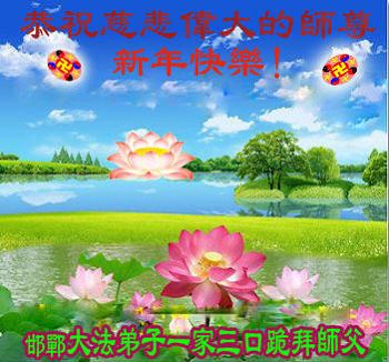河北省邯郸大法弟子一家三口恭祝慈悲伟大的师尊新年快乐!