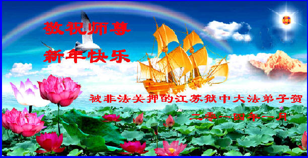 长夜将逝,曙光在前,经历再多的魔炼都永远不会动摇弟子义无反顾的助师正法、坚定的做好三件事的金刚不动的心。在新的一年里,我们会多向内找,破除旧势力的安排,消除间隔,救度更多的众生,让师父少操心,圆满随师还。值此新年来临之际,我们给师父拜年了,遥祝师父新年快乐!我们想念您! 江苏被非法关押的狱中大法弟子向师尊问好!敬祝师尊新年快乐!