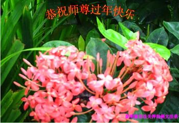 谨代表吉林省吉林市桦甸市全体大法弟子、被非法关押的大法弟子及刚刚走回来的大法学员敬祝伟大的师父新年快乐!