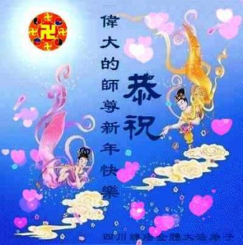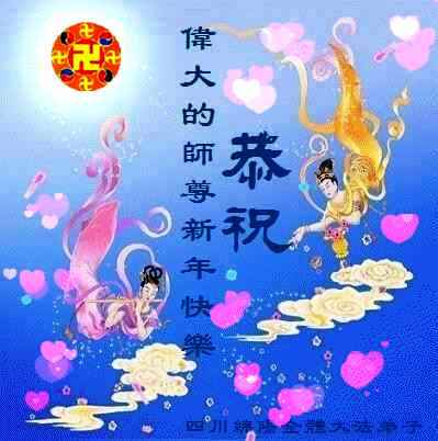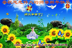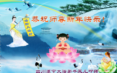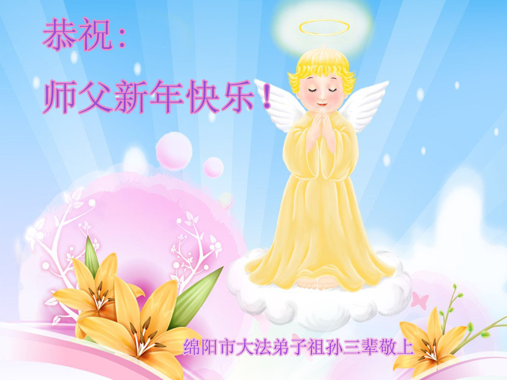 新年到,给师父拜年啦!苍穹一曲颂师恩!在师父慈悲呵护下,虽然我们流离在外,可我们没有感到孤独,从风风雨雨中走到了今天,全靠有师在,有法在。走到哪里都要记住自己是大法弟子,是助师正法的大法徒,随时要保持清醒的头脑,学好法,修好自己,做好三件事,圆满随师还。再一次叩谢师恩! 四川省绵阳市游仙区学法小组大法弟子恭祝师父新年好!