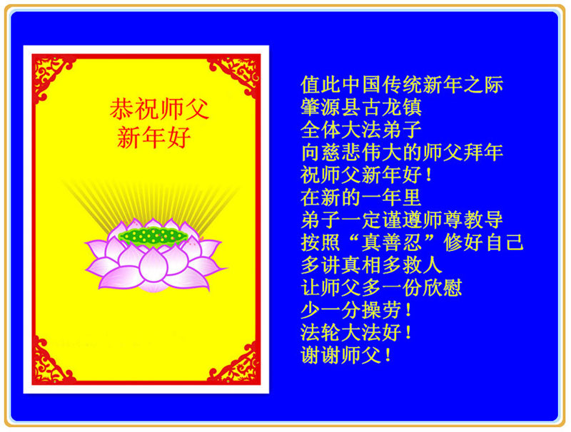 【明慧网二零一四年一月二十八日】 黑龙江省大庆市肇源县古龙镇大法弟子恭祝师父过年好!