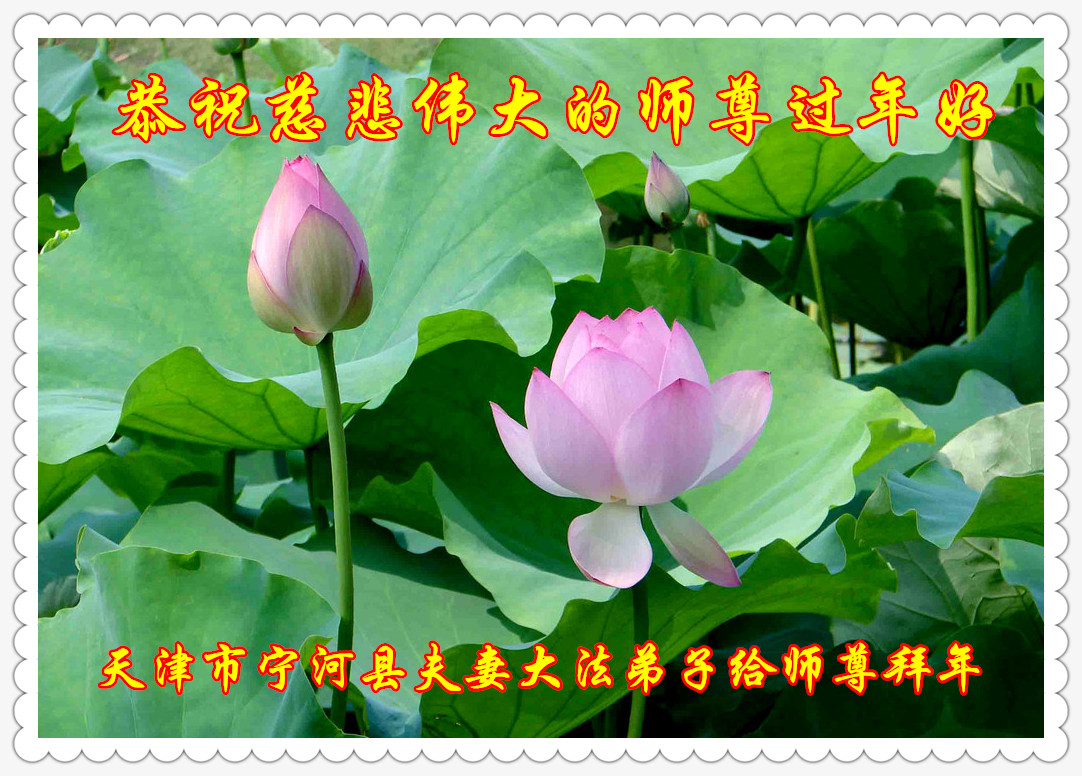 天津宁河县夫妻大法弟子恭祝慈悲伟大的师尊过年好!