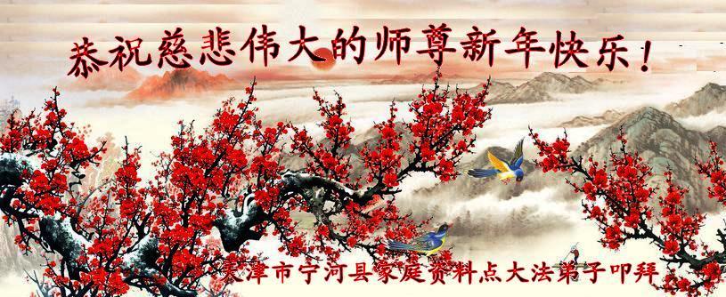 宁河的全体大法弟子虔心跪拜慈悲伟大的师尊过年好!请师父放心,宁河的大法弟子一直牢记师父的教诲,抓紧救度所有的众生。在此,全体大法弟子携宁河县的父老乡亲向师尊拜年! 天津宁河大法弟子恭祝师父过年好!