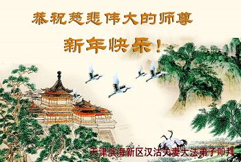 天津滨海新区汉沽夫妻大法弟子恭祝师尊新年快乐!