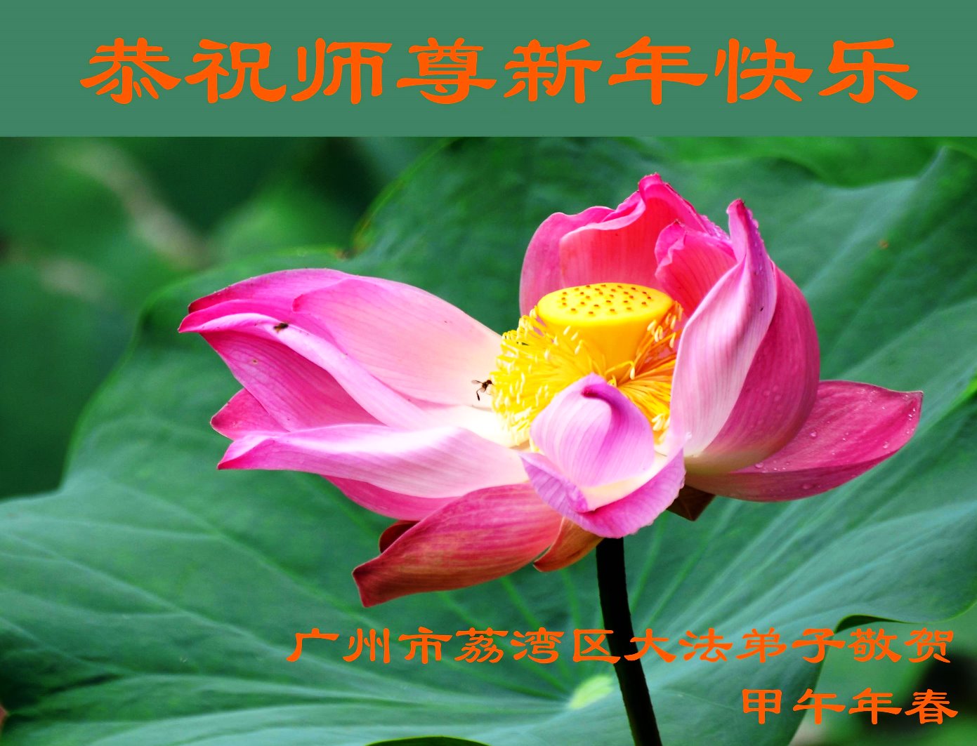 师尊的正法洪流,洪贯宇宙一切时空,善恶、好坏已分明,世人能明白真相,是大法的威德。我们一定不辜负师恩浩荡,要在新的一年中,理智讲清法轮功被迫害事实,進一步讲清“伪火”真相,广传·九·评*救世人,铲除邪共对众生的毒害。广泛发放神韵光盘,最大限度解救一切有缘,越到最后越精進,走正修炼路,时时向内找,事事对照大法做,祥和慈悲对众生,和死神抢时间,尽量多救人,不留遗憾兑誓愿。 广东省广州市荔湾区大法弟子恭祝师尊新年快乐!
