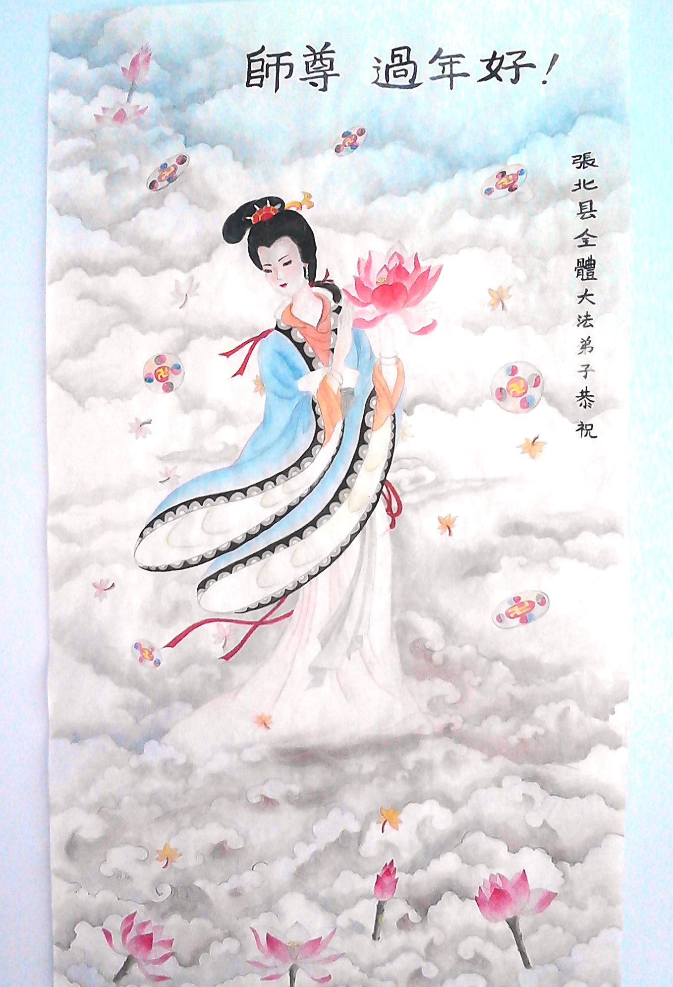 感谢慈悲伟大的师父救度之恩,给我的智慧,我一定要珍惜。 结缘 一年一度一瞬间 我和师父接上缘 学法炼功修心性 返本归真返家园 河北省张家口一学法小组全体弟子向慈悲伟大的师父拜年!