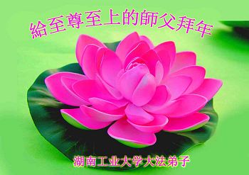 师尊新年好!弟子想念慈悲的师尊!真善忍宇宙大法是弟子做好一切的唯一标准,弟子要通过自己的言传身教向孩子们传递大法的美好,尤其在中共邪*党-的红色恐怖下,孩子们沐浴着佛光免受心灵的毒害。弟子感恩师尊慈悲给予弟子证实大法、救度众生的每一次机缘!弟子会在新的一年里继续勇猛精進,更好的做好三件事,跟师尊圆满的回家! 跪拜师尊!合十! 湖南工业大学大法弟子恭祝师尊新年快乐!