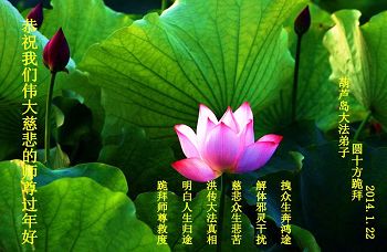 【明慧网二零一四年一月二十九日】 辽宁省葫芦岛一大法弟子恭祝我们伟大慈悲的师尊过年好!