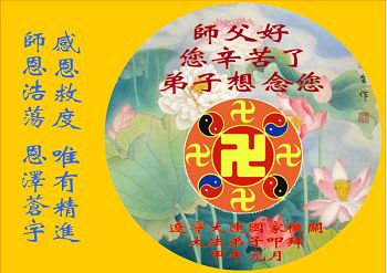 中国传统大年来到了,弟子恭祝师尊新年快乐!听人说,耶稣讲过税吏最难度。在这复杂的环境里我们俩位大法弟子一定遵照师尊的教诲,尽最大努力多救人!同时代表我妻子及女儿向慈悲伟大的师父叩谢救度之恩,在正法的最后时刻,我们一定以法为师,做好三件事,继续多救人,圆满随师还。 大陆交通系统大法弟子恭祝师尊新年好!