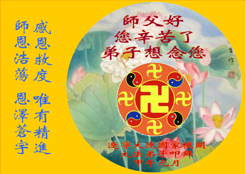 【明慧网二零一四年一月三十日】 辽宁大连政府机关大法弟子恭祝恩师过年好!