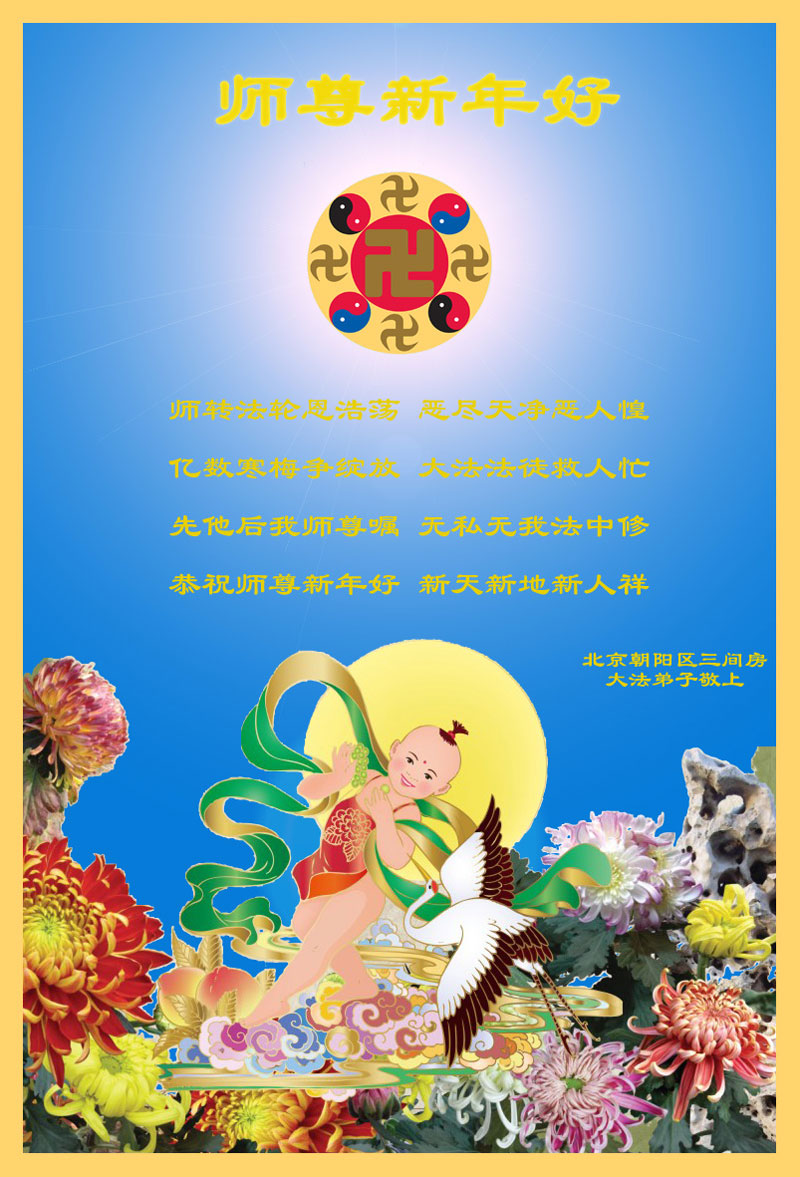 尊敬的师尊新年好!在新的一年里,按师尊要求做好三件事,多救人,圆满随师还。 北京海淀区北洼路大法弟子恭祝慈悲伟大的师尊新年好!