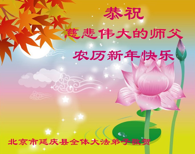 伟大慈悲的师父:您好!我们是海淀、西城的部份大法弟子,在新年之际,寄上一份贺卡表达我们对师尊的敬仰之心, 感谢师父的慈悲呵护,恭祝师父新年好! 延庆全体大法弟子恭祝师尊新年好!