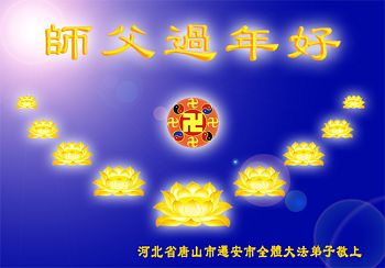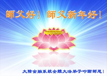 师尊佛恩浩荡,为众生操尽了心,师父辛苦了!千言万语也表达不了我们对您的祝福和思念!我们一定听师尊的话,修好自己,做好三件事,快救人,多救人,让师父多一份欣慰,少一份操劳。盼望与师尊团聚的那一天。军工系统全体大法弟子叩拜师尊! 双手合十! 大陆金融系统全体大法弟子恭祝师尊过年好!