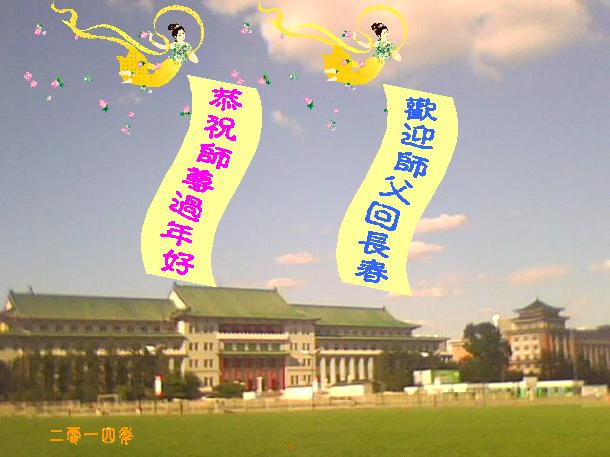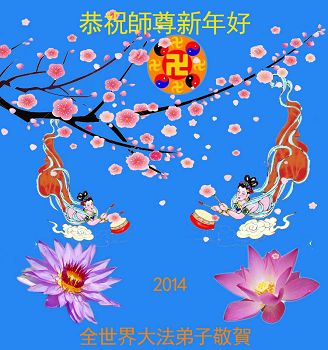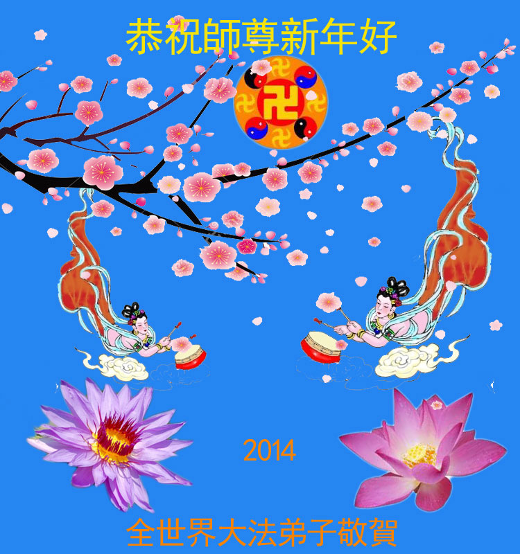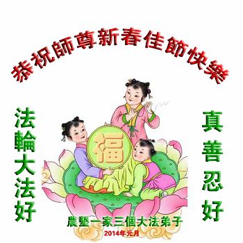 感恩师尊慈悲度 唯有精進谢师恩 大陆大法弟子母女俩敬上 二零一四年一月十日 大陆大法弟子恭祝慈悲伟大的师父过年好!