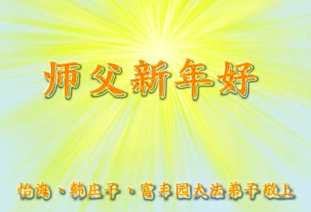 师父新年好! 弟子们想念您!我们一定抓紧时间做好三件事,多救人,叫师尊多一份欣慰,少一份操劳。请师父放心! 富锦市一学法小组 黑龙江省哈尔滨大法弟子恭祝伟大慈悲的师父新年快乐!