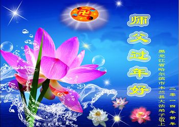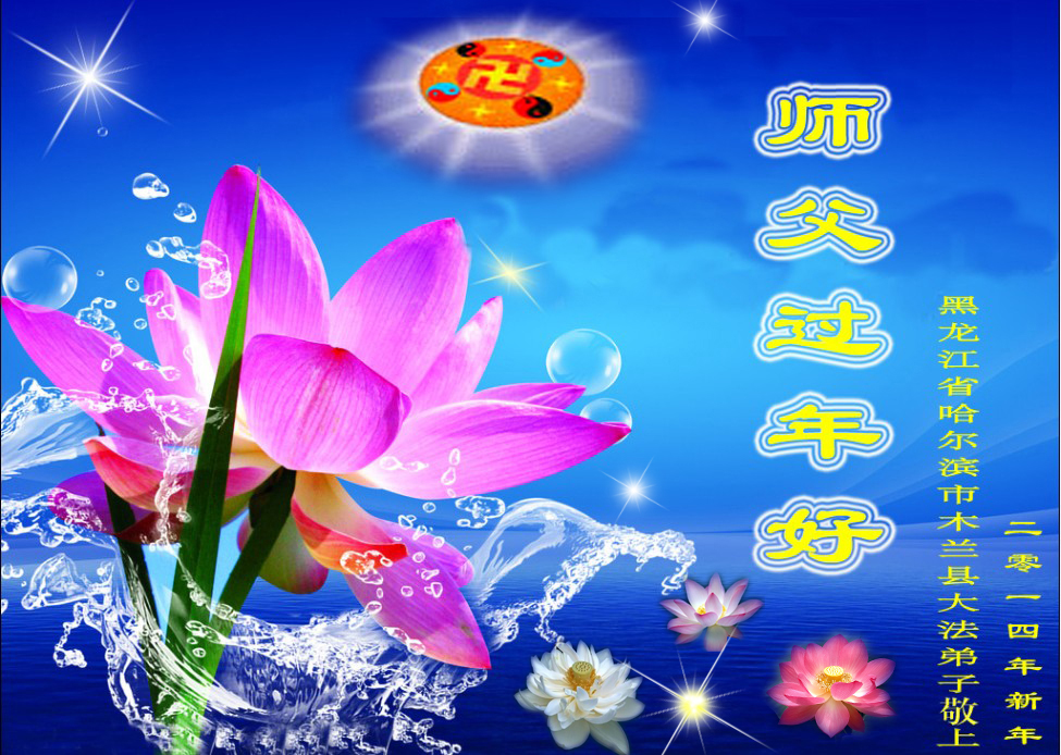 感谢师尊慈悲救度,唯有做好三件事,报答师恩,弟子决心在有限的时间内,继续做好三件事,完成使命,圆满随师还。 弟子跪拜师尊,合十 黑龙江省佳木斯市向阳区一学法小组全体 二零一四年一月二十四日 黑龙江省佳木斯北部大法弟子祝师尊新春快乐!