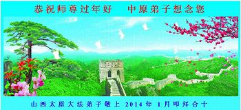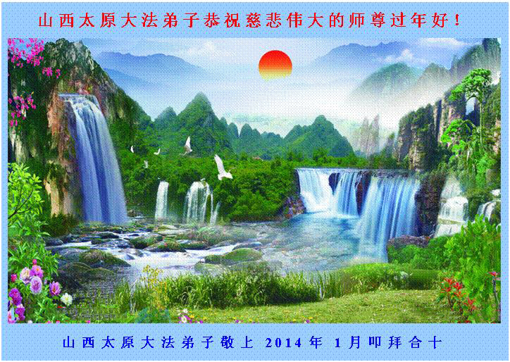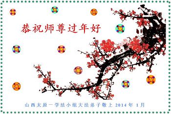 【明慧网二零一四年一月三十日】 山西省晋城市一学法小组全体大法弟子恭祝慈悲伟大的师尊新年快乐!